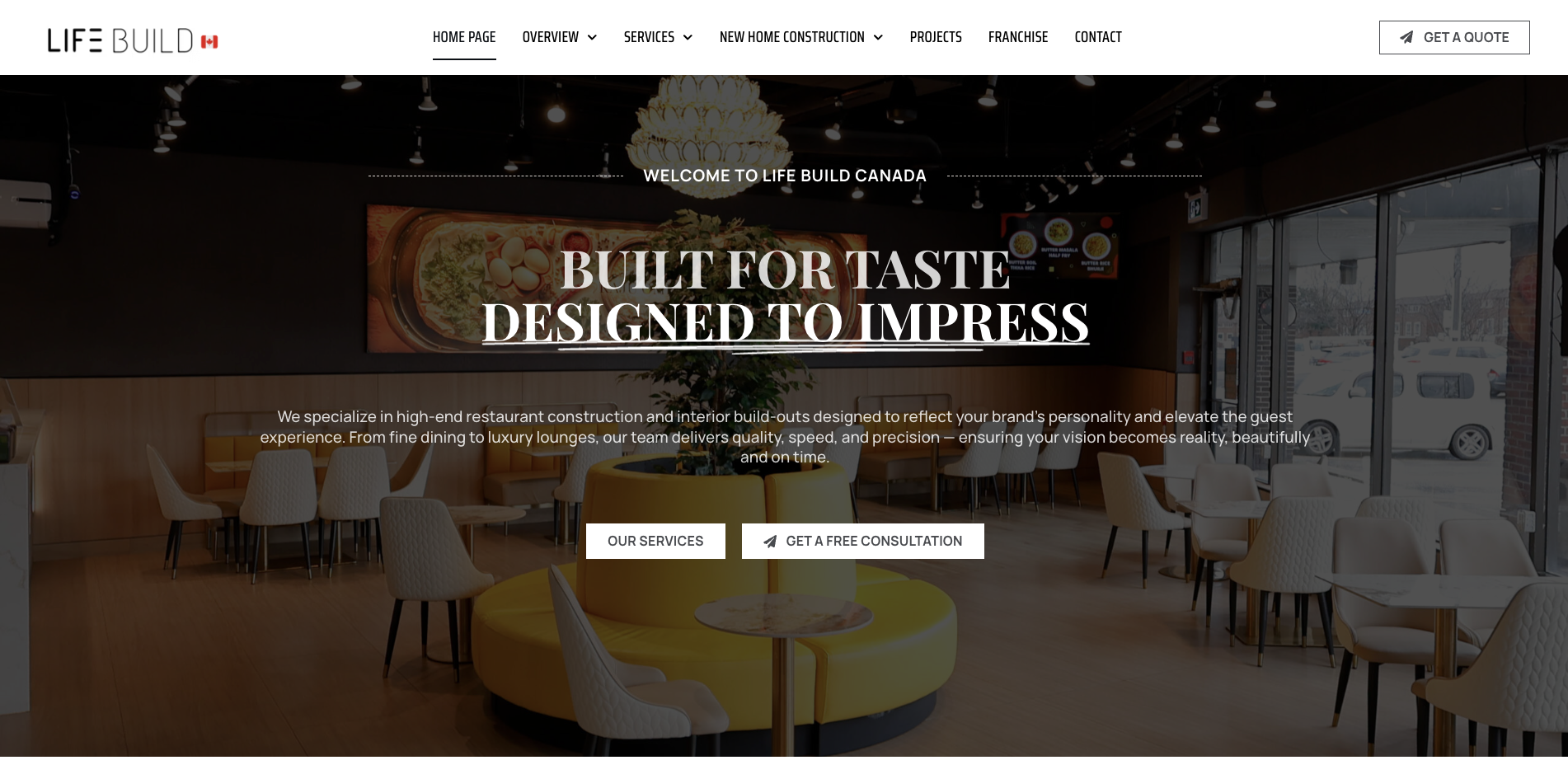 Designed and developed a professional, responsive website for Life Build Canada — a full-service construction and design partner specializing in restaurant and hospitality buildouts across Canada. The site highlights their integrated services from planning and project management to custom millwork and renovations, with clean layouts, clear service sections, and easy client engagement.